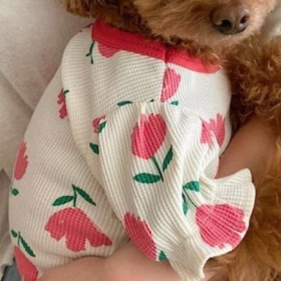 大きなチューリップの柄と、袖のパフがかわいいガーリーな1枚。